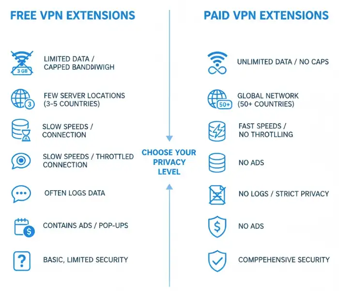 People also overlook crucial details such as privacy policies or the permissions an extension requests. Ignoring these elements can expose users to data collection practices that contradict the very purpose of using a VPN. Speed is another underestimated factor—some buyers only discover performance issues after installation. And while free VPNs attract attention, they’re rarely suitable for sensitive tasks like online banking or work-related browsing because of limited security assurances.