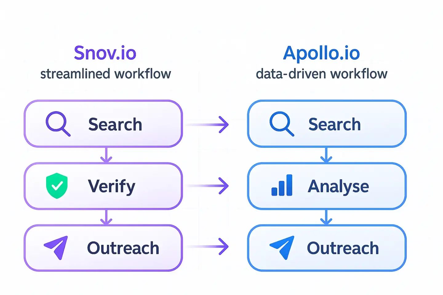Apollo.io has a big contact database and strong key features of Apollo, including main Apollo tools for boosting sales outreach and marketing, as well as various sales intelligence tools. But, the way it is priced and how it works may be too much for small teams. Snov.io offers simple workflows, accurate email checking and affordable plans which is why growing businesses with different business needs find it especially attractive. This makes Snov.io a better choice for many. You will find here a comparison of Snov.io and Apollo.io in terms of features, pricing, ease of use and performance to help you decide which is better for your sales outreach this year.