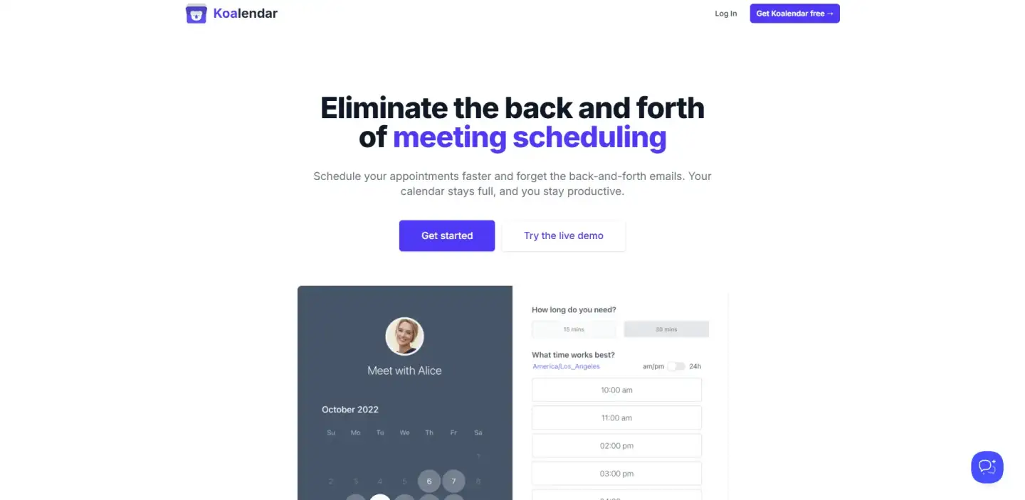Koalendar is clean and simple to operate and it is popular among freelancers and small businesses. You receive personalized reservation sites, auto-emails, and calendar integration, without any charges.