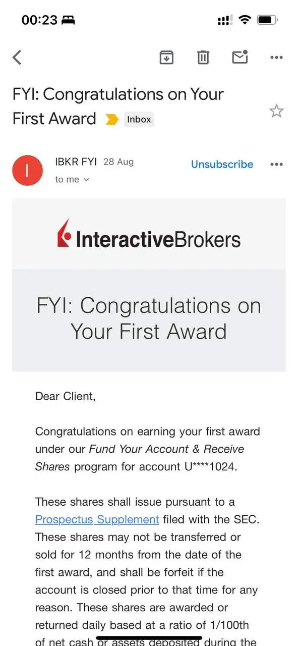 Interactive Brokers offers a sign-up bonus for new clients through a referral program. When new users open an account and put in certain amounts, they get IBKR stock. This promotion is meant to attract new clients and motivate current users to refer friends.