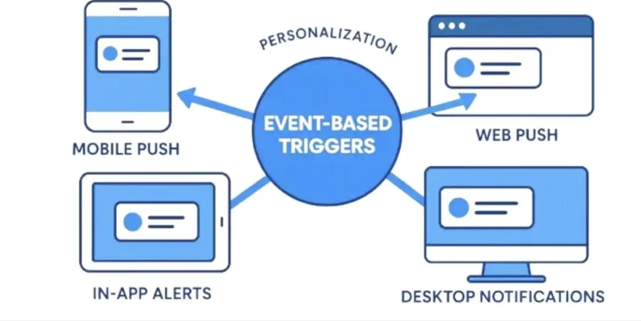 Today, push notifications cover several formats — mobile push, web push, in-app messages, desktop alerts, and event-driven system notifications. All of them work together to guide users through onboarding, highlight important updates, recover lost conversions, and support long-term engagement. In 2025, the definition of a push notification service isn’t limited to sending messages; it’s about delivering timely, personalized communication across every device your audience touches.